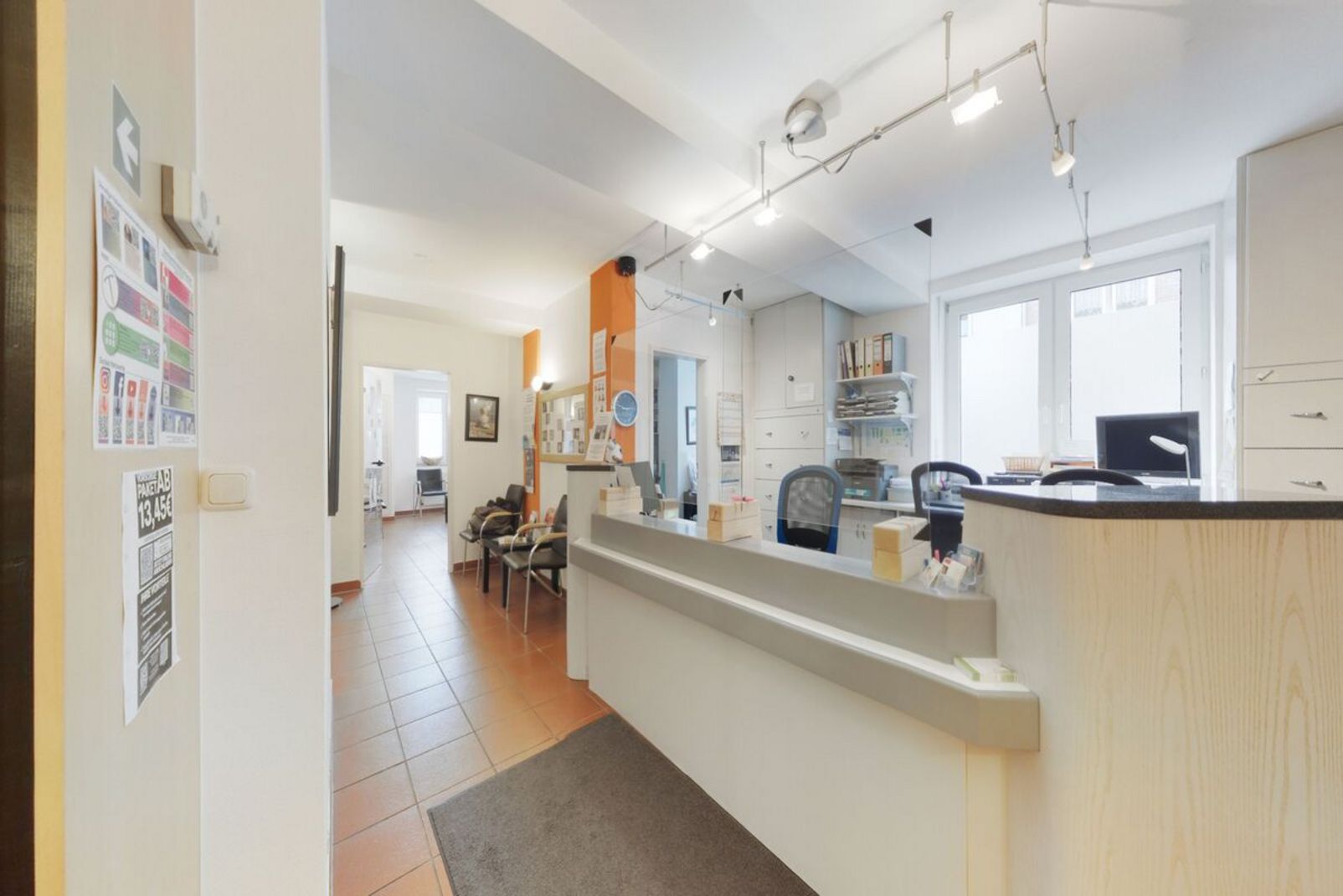 Diese Praxis überzeugt auf ca. 154 m² Praxisfläche durch eine durchdachte, praxisbezogene Raumaufteilung, die Funktionalität, Komfort und Effizienz optimal vereint. Bereits beim Betreten empfängt Sie ein großzügiger Empfangsbereich mit ausreichend Stauraum für Unterlagen, Akten und Material. Die hellen Flure schaffen eine freundliche Arbeitsatmosphäre und tragen maßgeblich zu einer angenehmen Arbeits- wie auch Warteumgebung bei.