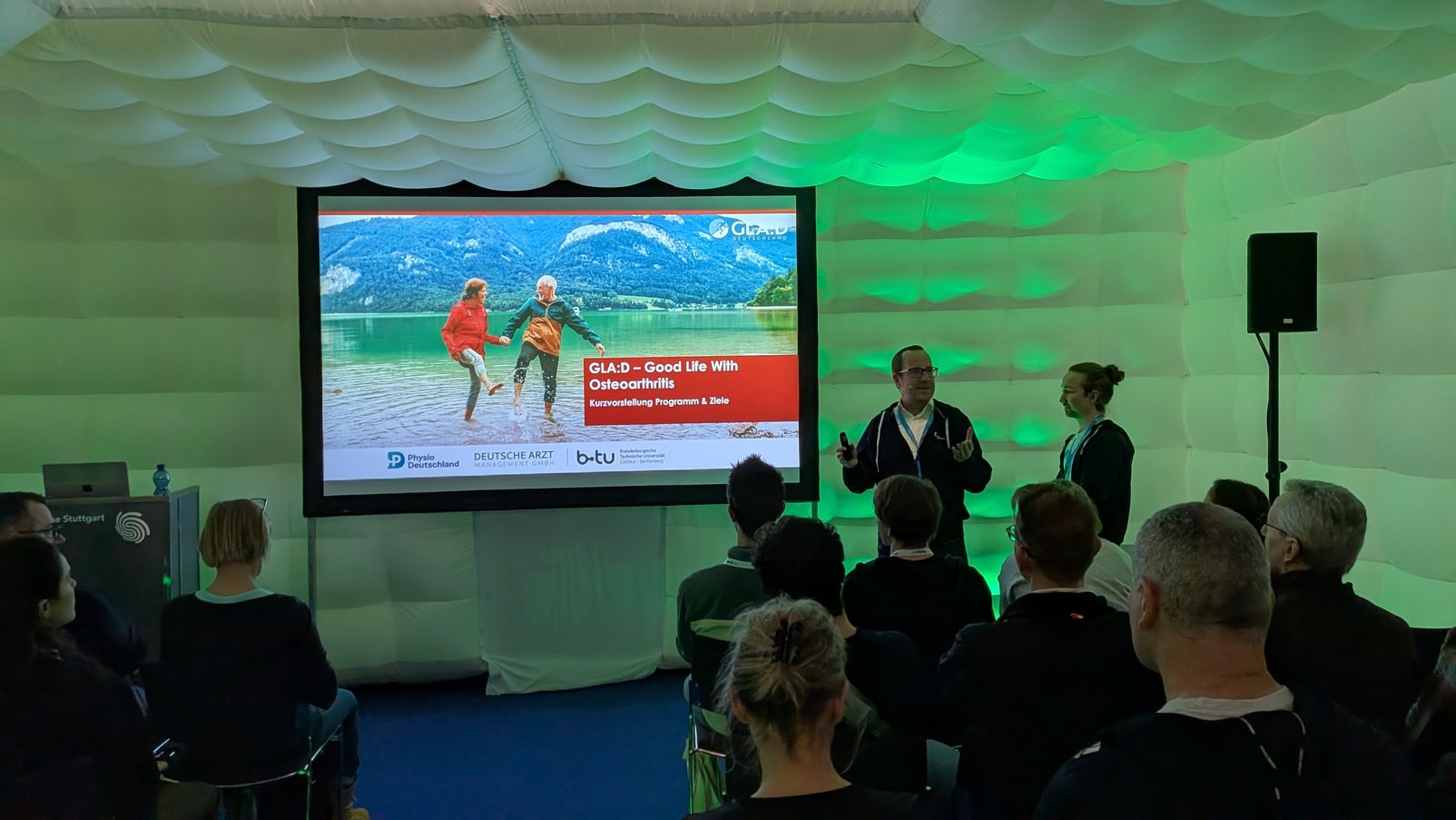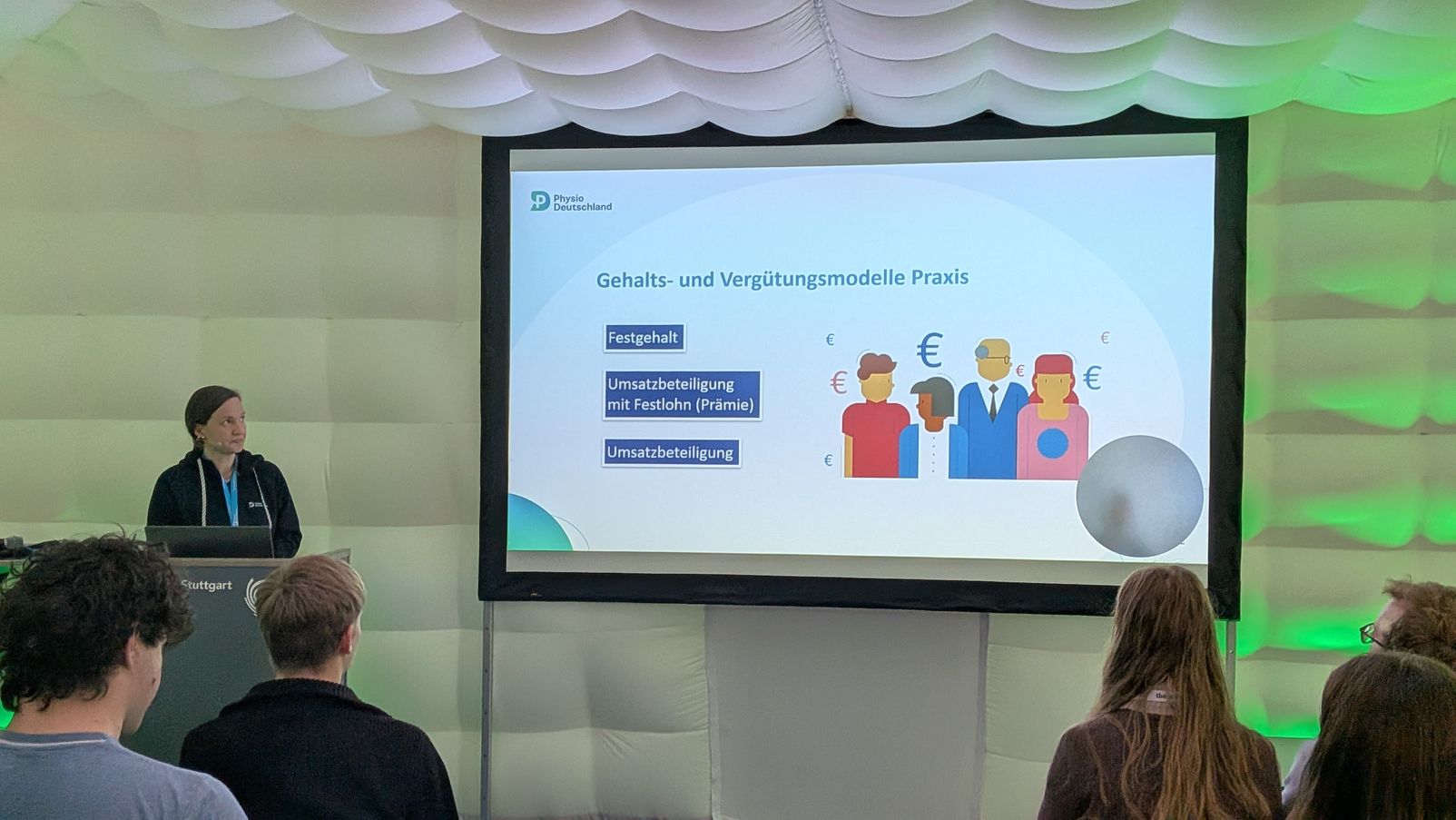 Die Vorträge und Workshops auf der therapro waren an allen drei Tagen ein voller Erfolg und durchweg hervorragend besucht. Bereits am Freitag füllten sich die Reihen früh, als es im Kleines Berufseinstiegsforum um Tipps und Tricks rund um das erste Gehalt mit BaWü-Vorstandsvorsitzenden Hannah Hecker ging. Alex Elser (Junges Physio Deutschland) berichtete über innovative VR‑Anwendungen im Schmerzmanagement. Auch die Sessions am Samstag stießen auf großes Interesse: Einen fundierten Einblick in das moderne Arthrose‑Programme GLA:D gab der Vortrag von BaWü Vorstand Dr. Claus Beyerlein. Michael Adams (Junges Physio Deutschland) berichtete über die Entwicklung therapeutischer Animationsvideos. Einen Silent-Workshop zu unserer Webinarreihe PhysioGo fand bei unserem Partner ETL Advision statt. Hier beantworteten Louise Onay (Geschäftsstelle BaWÜ), Marc Akel (stv. Vorsitzender RV NRW) und BaWü-Vorstandsvorsitzende Hannah Hecker konkrete Fragen zur Praxisgründung.