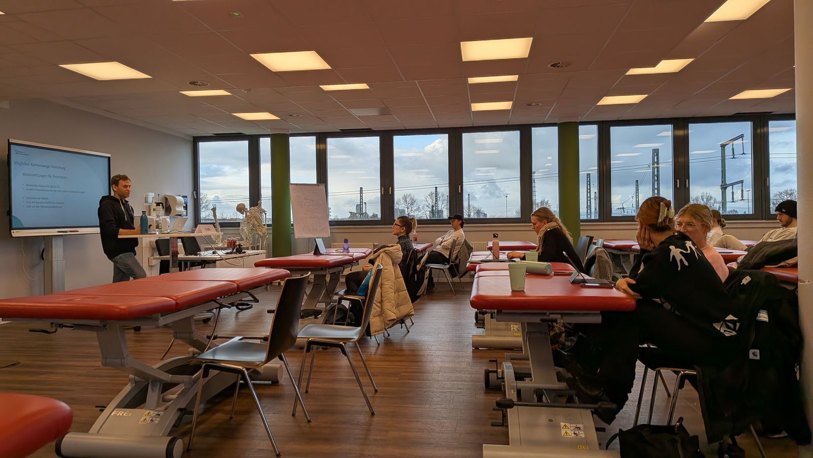 Die Teilnehmenden erwartete ein ganzer Tag voller Informationen, Vorträge und Seminare zu Themen wie Praxisgründung, weitere Karrierewege oder auch fachspezifische Themen wie die „Physiotherapie im Spitzensport“. Auch für die Lehrkräfte gab es ein Seminar „Physiotherapie als wissenschaftsgeleitete Praxis“.