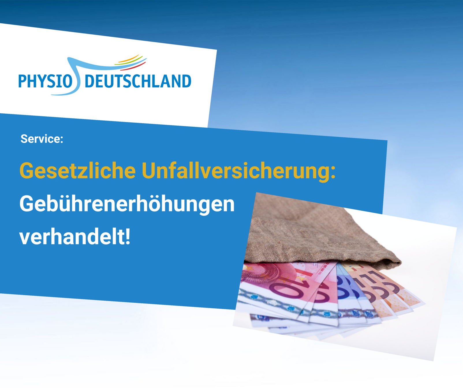 Das Ergebnis: Die Vergütungen in der gesetzlichen Unfallversicherung erhöhen sich für alle Verordnungen, bei denen die erste Behandlung ab dem 01. Oktober durchgeführt wird, linear um fünf Prozent. Damit erhöht sich die Vergütung für eine krankengymnastische Behandlung von 24,92 Euro auf neu 26,16 Euro. Bei der Manuellen Therapie steigt die Vergütung von aktuell 29,74 Euro auf 31,22 Euro ab Oktober.