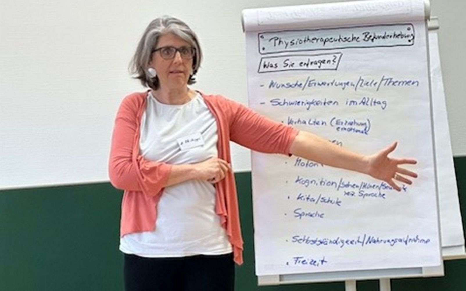 Mit rund 100 teilnehmenden Physiotherapeut*innen aus Praxis, Ausbildung und Wissenschaft fand am 21. März 2026 das Symposium Pädiatrie an der Fachhochschule Erfurt statt. Unter dem Leitthema „Um ein Kind aufzuziehen, braucht es ein ganzes Dorf“ bot die Fachkommission Physiotherapie – Kinder- und Jugendmedizin von Physio Deutschland ein abwechslungsreiches Programm mit evidenzbasierten Fachvorträgen am Vormittag, fünf praxisnahen Workshops am Nachmittag sowie einem abschließenden Impuls zur Bedeutung früher Medienerfahrungen. Die Rückmeldungen der Teilnehmenden fielen durchweg positiv aus – sowohl hinsichtlich der fachlichen Tiefe als auch des kollegialen Austauschs. Der Vormittag startete mit vier Fachvorträgen, die die zentralen Herausforderungen und Entwicklungen in der pädiatrischen Physiotherapie beleuchteten. Prof. Dr. Gisela Hanne‑Behnke aus Berlin stellte in ihrem Beitrag die Grundprinzipien einer konsequent familienzentrierten Physiotherapie vor und betonte die Bedeutung einer kooperativen Zusammenarbeit zwischen Therapeut*innen und Familien. Im Anschluss zeigte Prof. Dr. Michael Jung (Darmstadt), wie evidenzbasierte Entscheidungsprozesse im Spannungsfeld zwischen robotikgestützten High-End-Verfahren und klassischen Hands-on-Therapien gestaltet werden können. Sein Fazit: Konventionelle physiotherapeutische Ansätze behalten einen hohen Stellenwert, solange sie nachweislich alltagsrelevante Aktivität und Teilhabe verbessern. Mit einem besonderen Fokus auf frühgeborene Kinder erläuterte Anna Seemann (BcPT, Hamburg), wie entwicklungsfördernde Positionierungen und alltagsintegrierte Elternanleitungen dazu beitragen können, die motorische und sensomotorische Entwicklung im häuslichen Umfeld optimal zu unterstützen. Den Abschluss des Vortragsblocks bildete Dr. Sabine Nantke (Neuruppin), die einfühlsam die physiotherapeutische Begleitung traumatisierter Säuglinge und ihrer Eltern beleuchtete. Sie hob hervor, wie bedeutsam sichere Interaktionen, wiederholte positive Stimulation und elterliche Feinfühligkeit für die kindliche Entwicklung nach belastenden Geburtserlebnissen sind.
